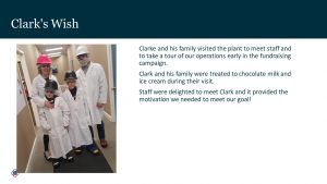 In addition, Central Dairies competed with 39 other plants nationwide and received an award for Special Projects, as the entire team worked together to fundraise $10,000.00 for “Clark’s Wish” with the Children’s Wish Foundation! Congratulations and keep up the great work!