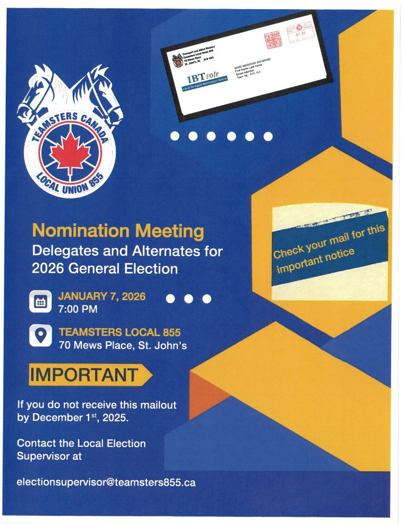 Nomination Notice Mailout Posted on 11/17/2025 Nomination notices have been mailed out to current members of the local. Please check your mail and if you do not receive this important information, contact the local as soon as possible.